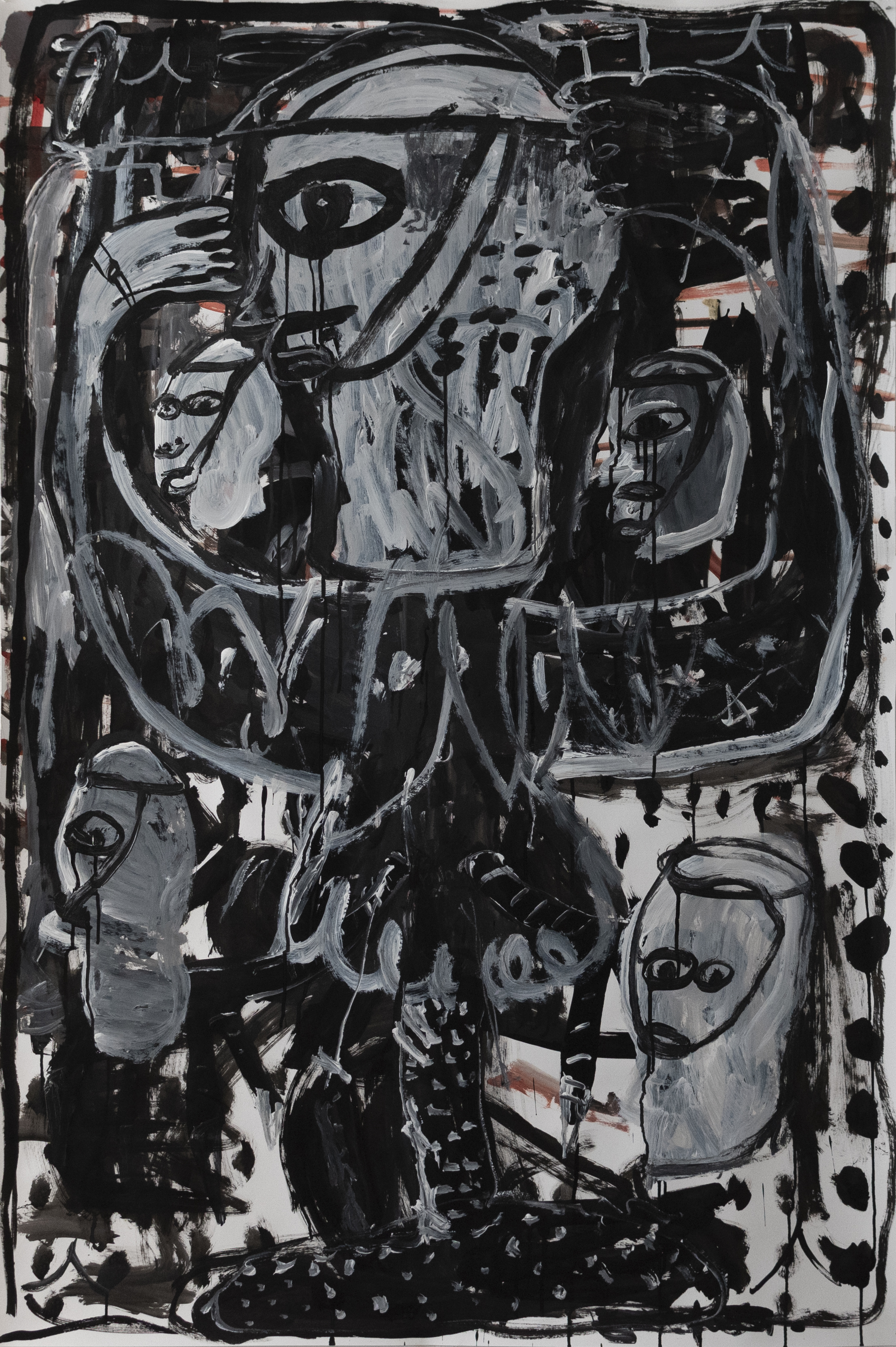 Acryl, Tusche, Acrylspray, Collage auf Papier